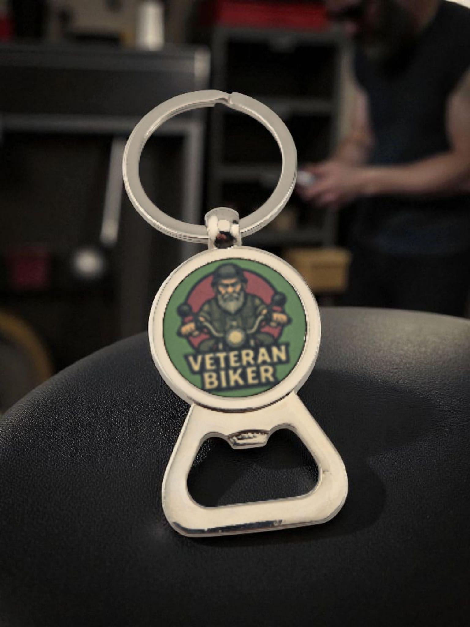 Metal Keyring – Strong, polished finish with matching Veteran Biker artwork
