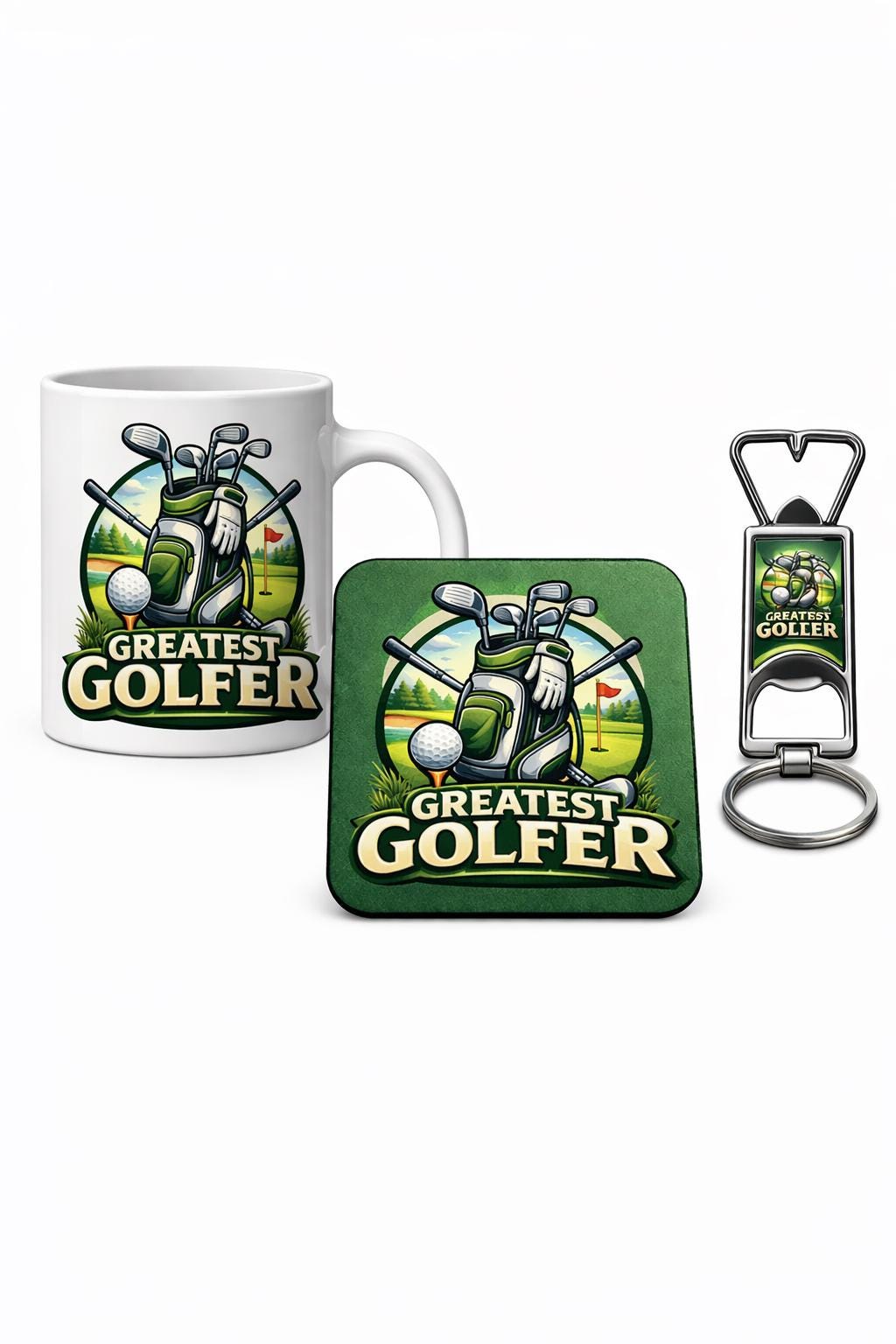 Greatest Golfer Gift Set - Golf Mug, Coaster & Bottle Opener Keychain