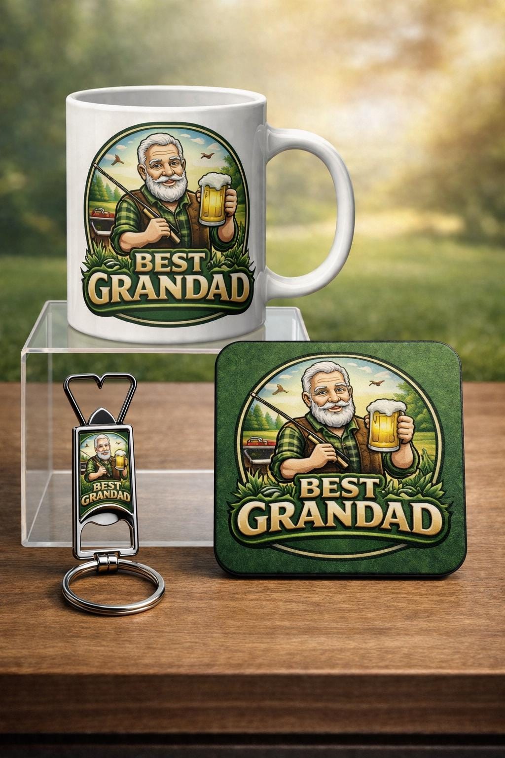 Every morning coffee, every cold beverage, and every time he reaches for his keys, Grandad will be reminded of your love and appreciation. The vintage-style artwork captures his personality and interests perfectly.