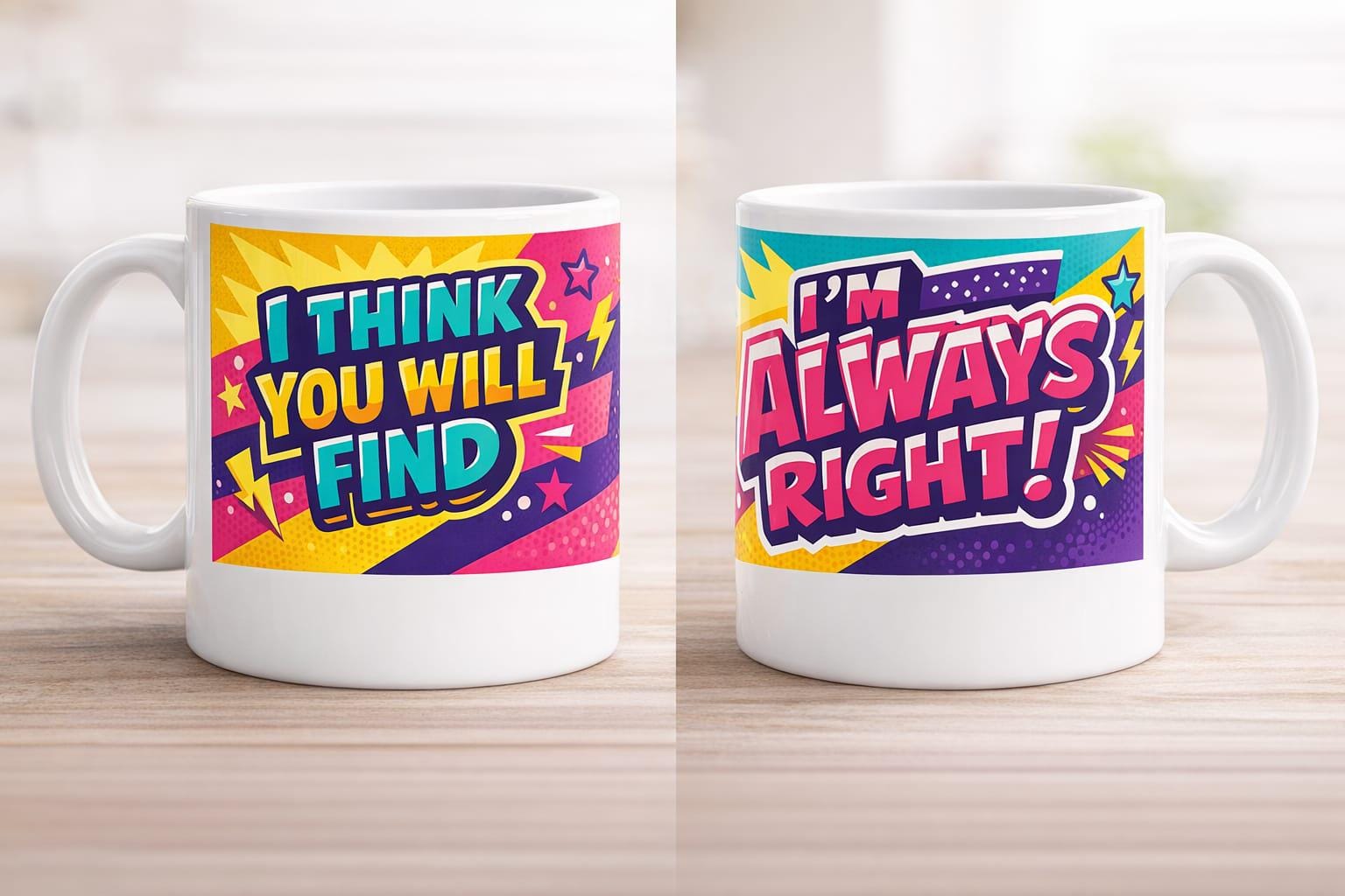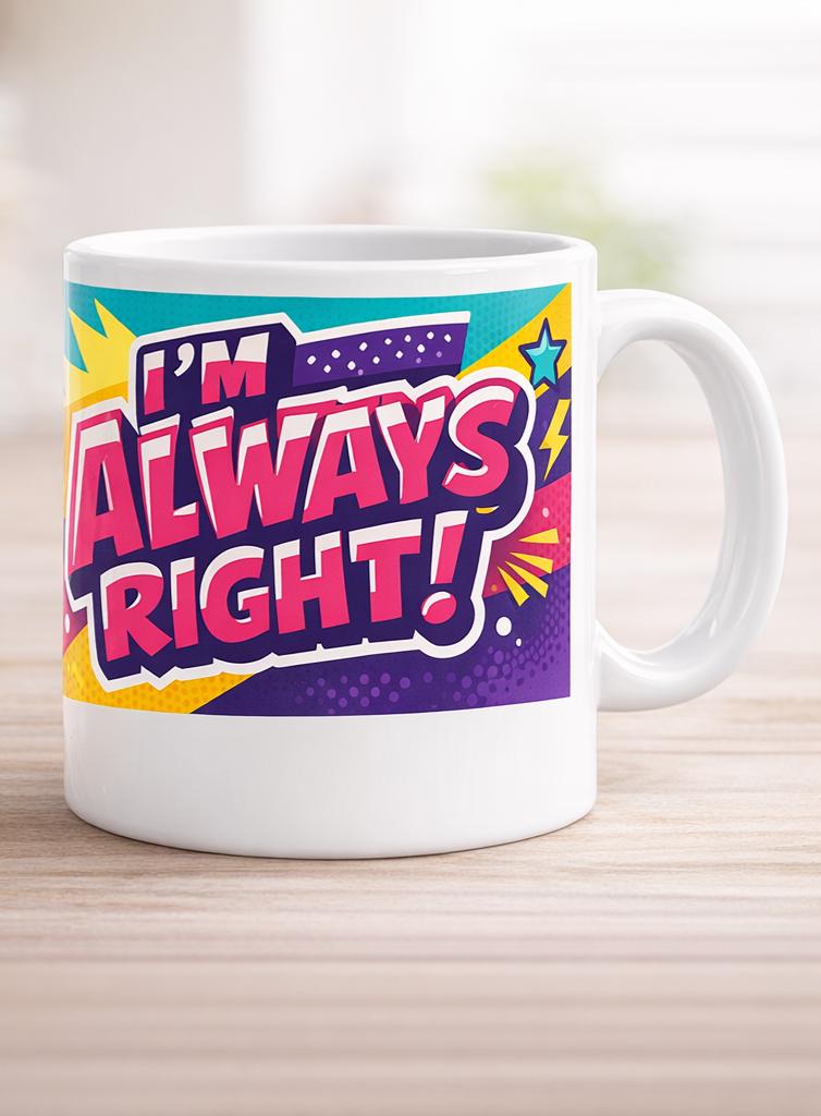 This bold and playful mug features the phrases “I Think You Will Find” on one side and “I’m Always Right!” on the other — making it the perfect sarcastic mug for, friends, or anyone who enjoys being confidently correct.