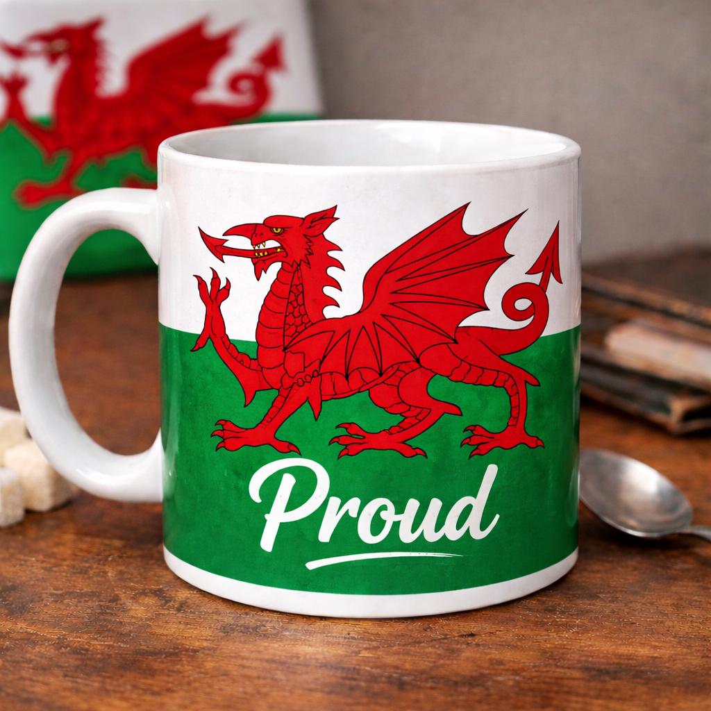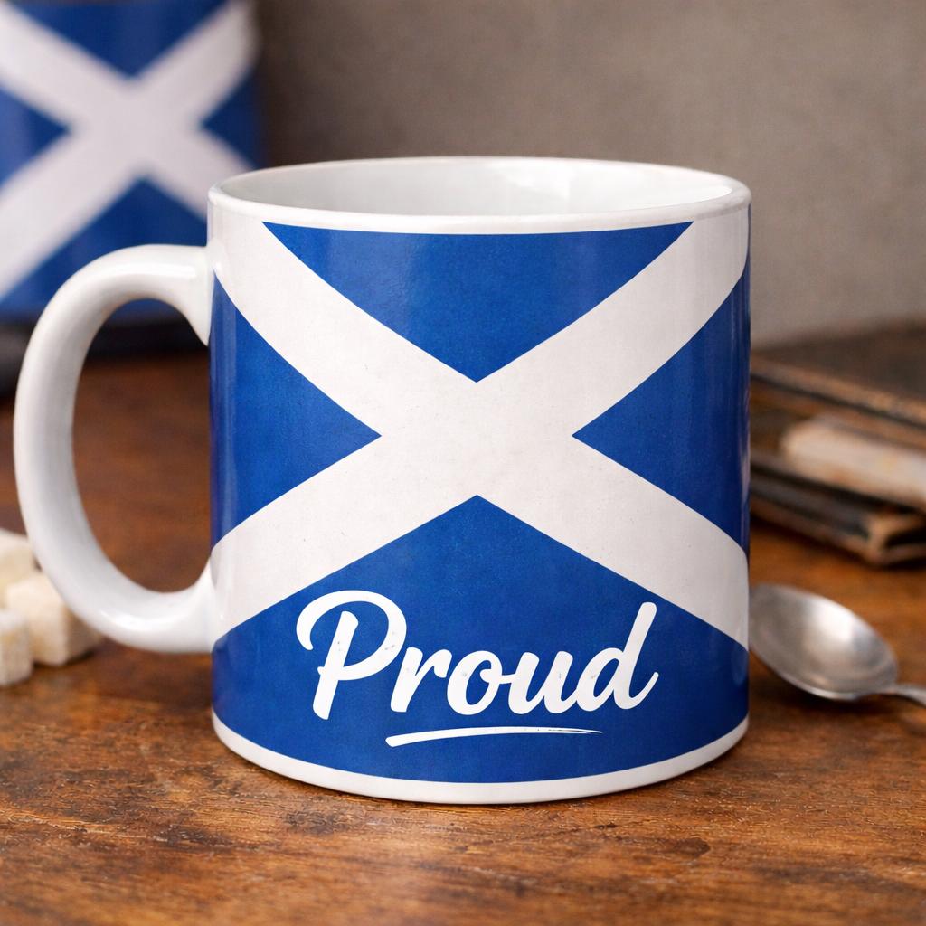 Show your pride with this bold and stylish ceramic mug, featuring iconic national flag designs paired with the word Proud in a modern script.