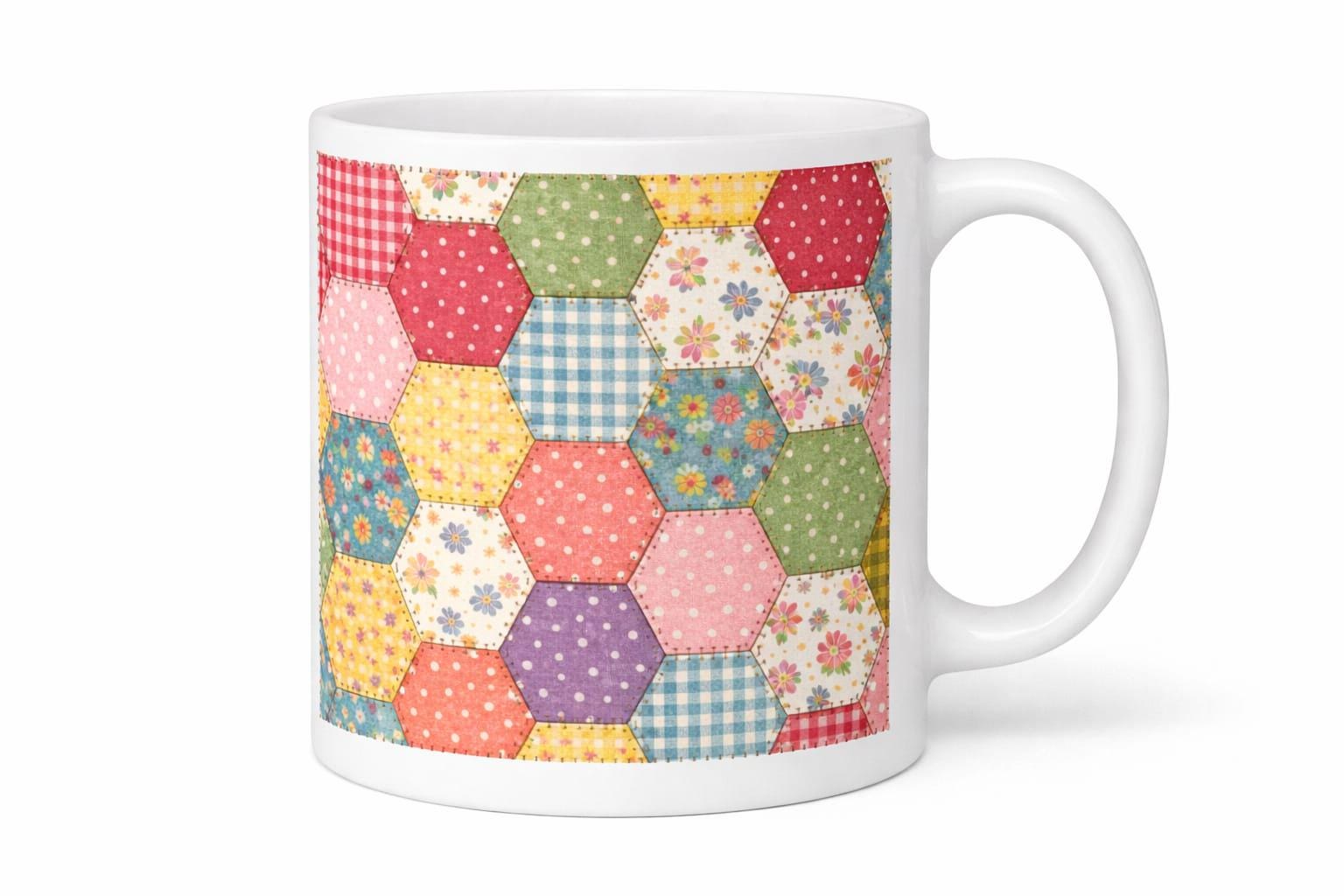 Bring comfort, nostalgia, and homely charm to every cup with this beautiful patchwork-style mug. Inspired by traditional quilt designs, this mug features a cosy collage of colourful fabric-style squares, stitched details, and a sweet heart motif at the centre.