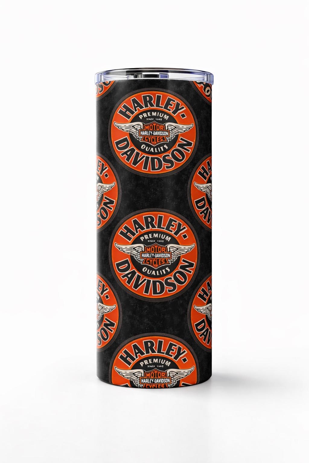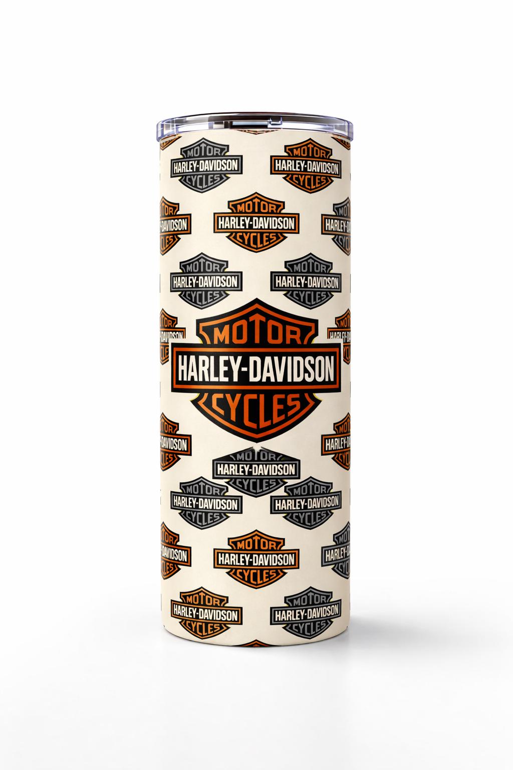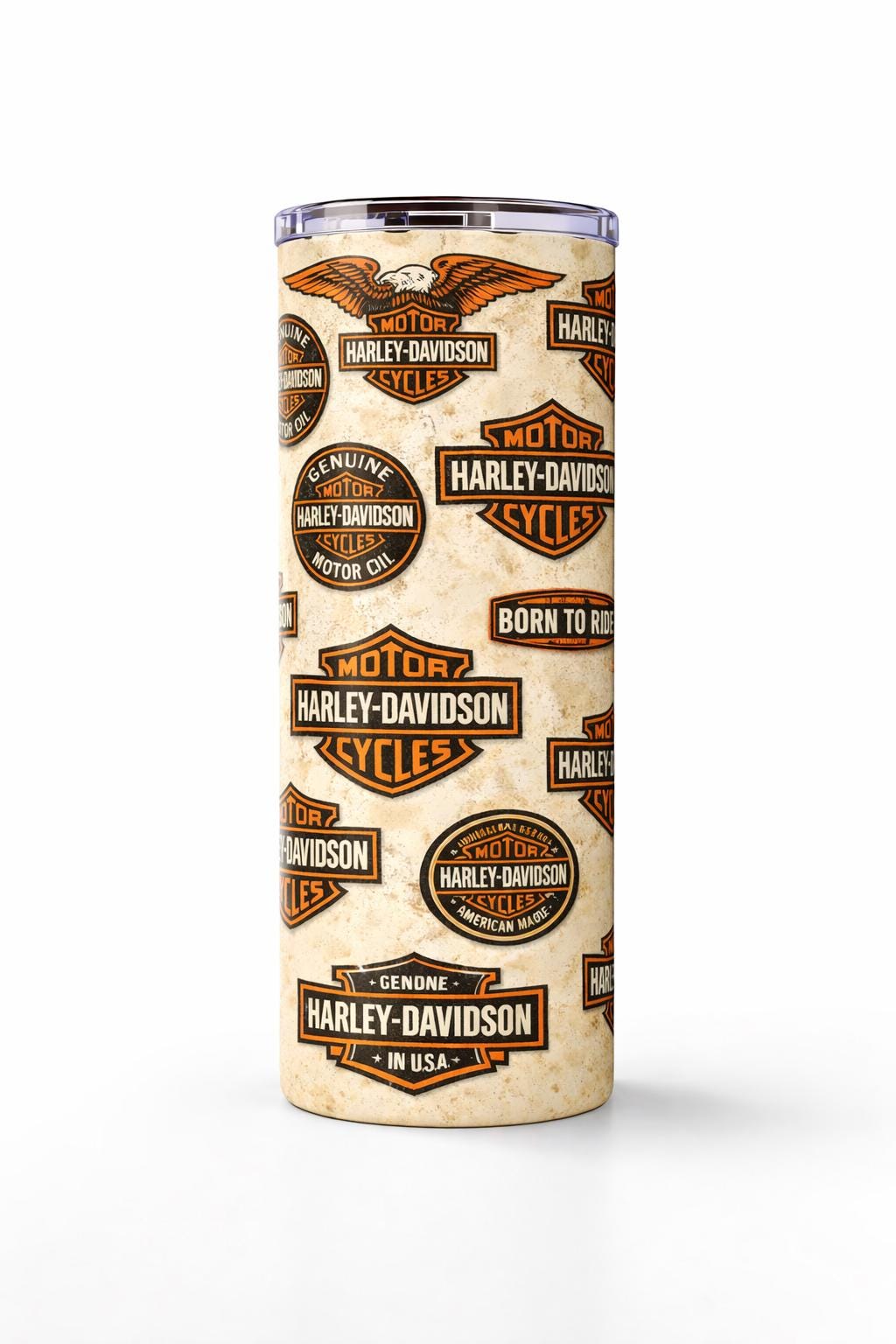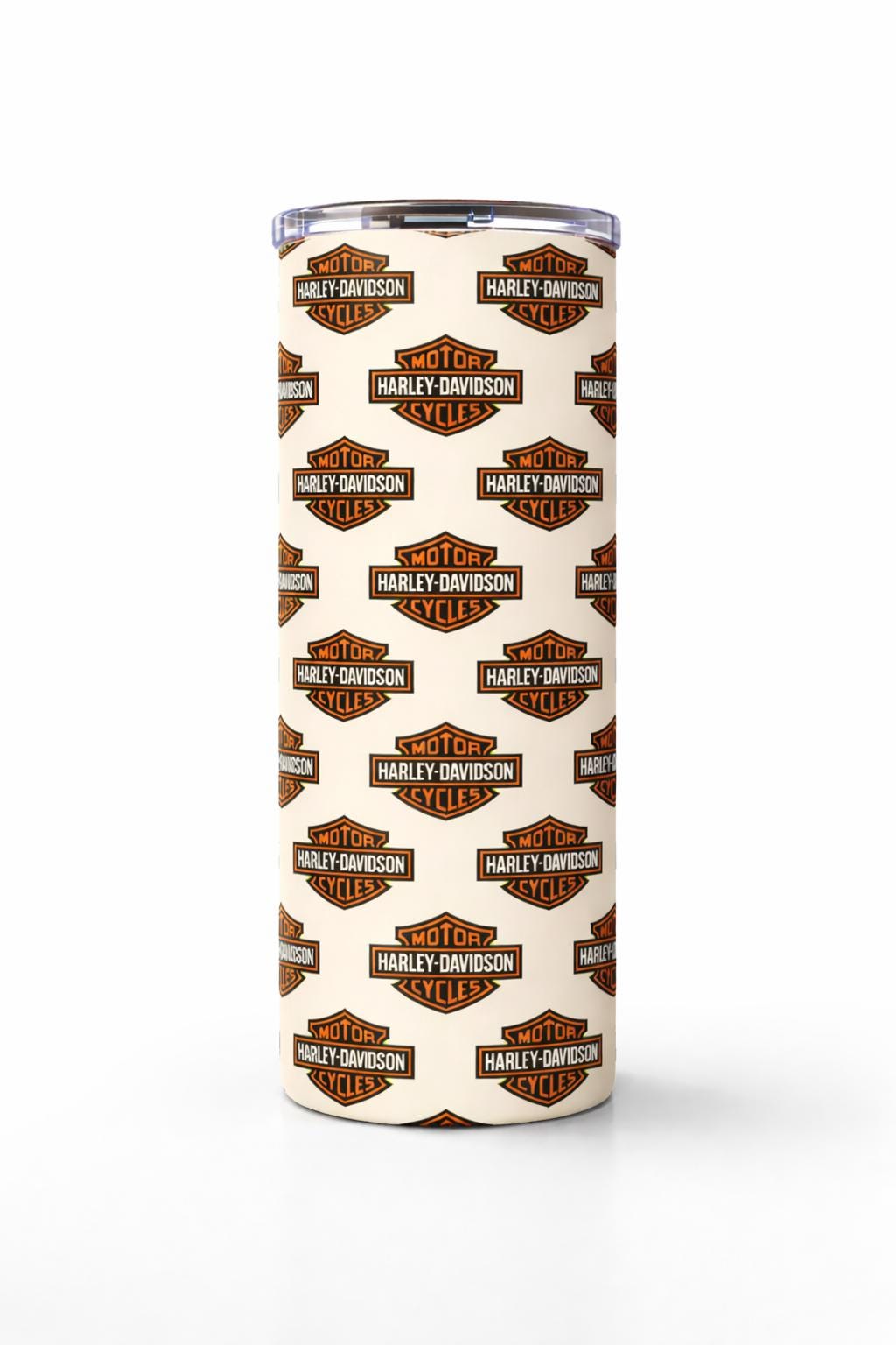 Fuel your passion for the open road with this bold Harley inspired 20oz straight tumbler. Featuring an all-over motorcycle logo design, this tumbler is perfect for riders, bike enthusiasts, and anyone who loves iconic biker style.