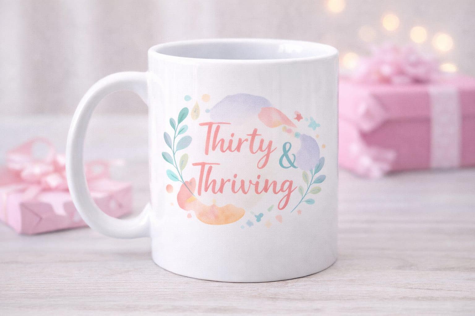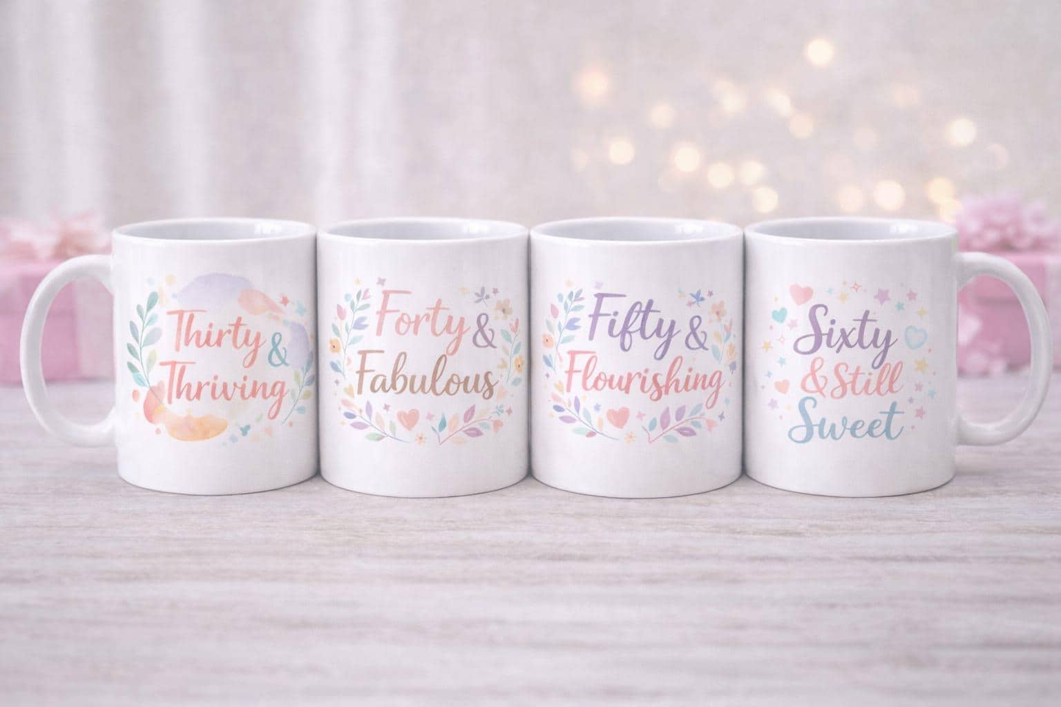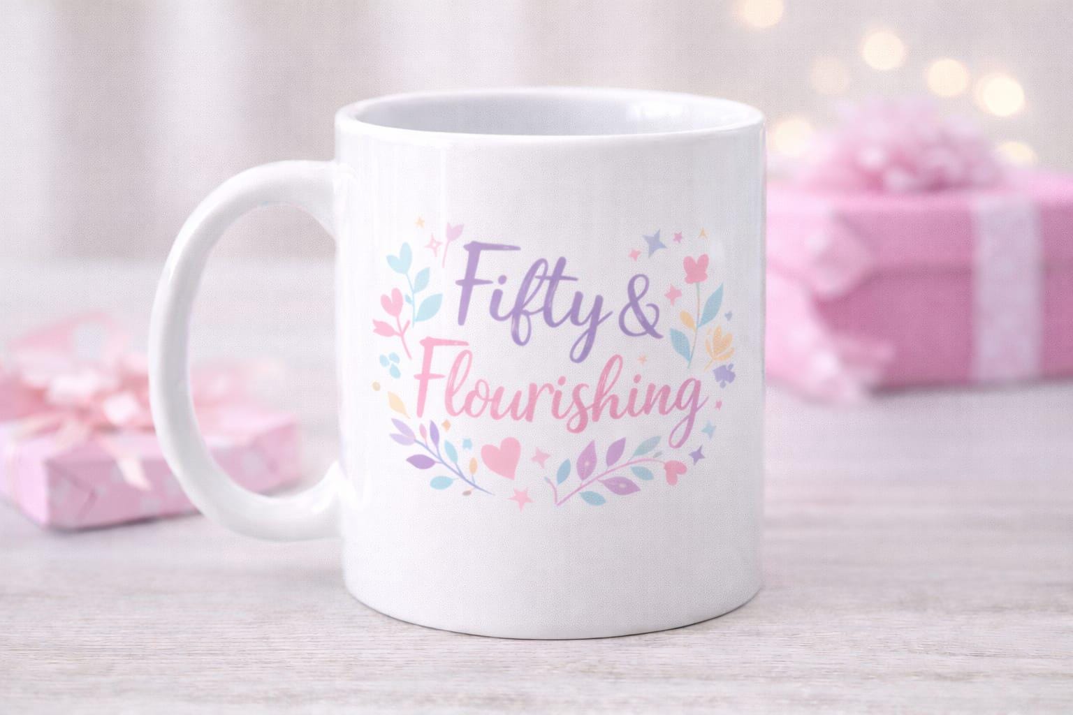 Celebrate in style. This mug features delicate pastel watercolour florals and elegant script lettering, creating a beautiful and uplifting design that marks this milestone birthday with confidence and grace.