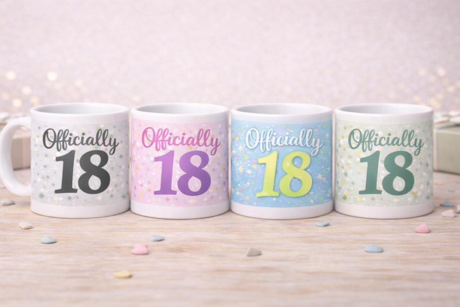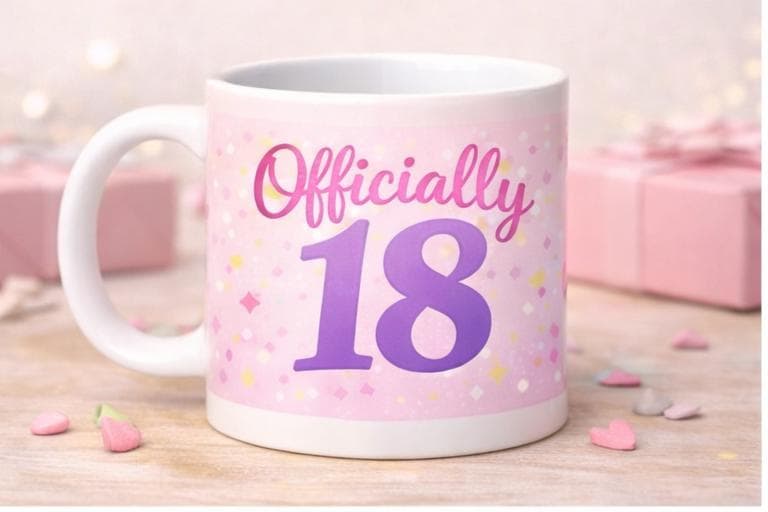 Celebrate a milestone moment with this fun and stylish Officially 18 birthday mug. Designed to mark a special eighteenth birthday, this mug features bold “Officially 18” lettering with a playful confetti-style background, available in multiple colour options to suit any personality.
