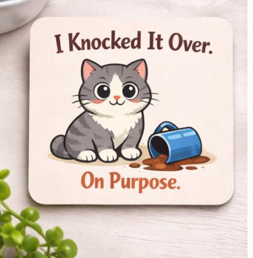 Ideal for cat mums, cat dads, home offices, kitchens, or as a cheeky conversation starter when guests pop round.