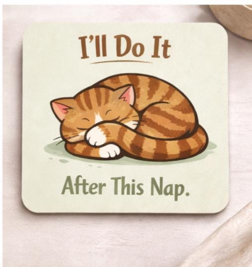 This funny cat coaster features a bold illustrated design with a relatable cat quote that every cat lover will recognise. Perfect as a small gift, stocking filler, or a treat for your own desk, this coaster combines humour with everyday practicality.