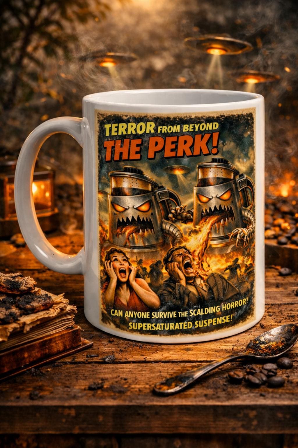 Perfect for movie lovers, sci-fi fans, collectors of vintage art, or anyone who enjoys a mug with real personality. Whether you are sipping tea, coffee, or hot chocolate, this fun and nostalgic mug is guaranteed to stand out on any desk or kitchen counter.