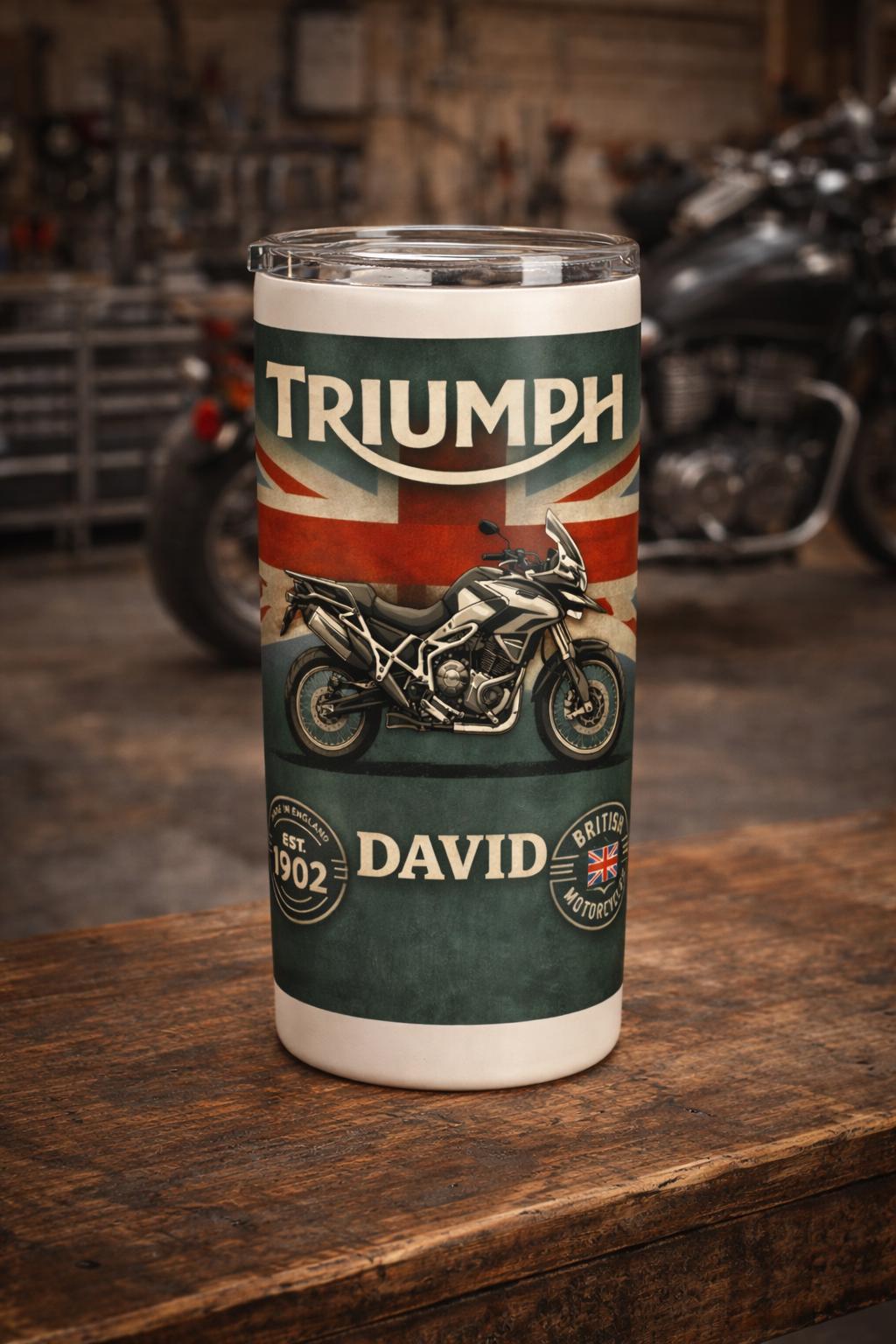 Celebrate iconic British engineering with this personalised Triumph motorcycle tumbler, designed for true riders who appreciate heritage, performance, and style.
