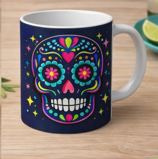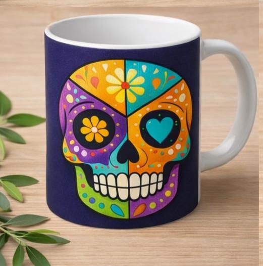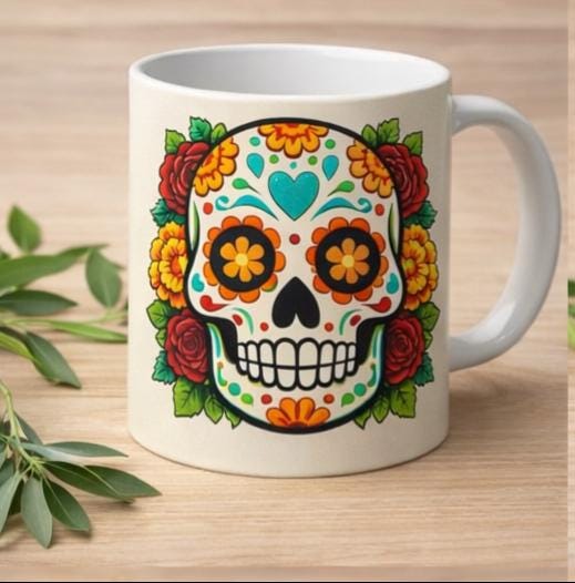 Perfect for coffee, tea, or hot chocolate, this mug makes a thoughtful present for birthdays, Halloween lovers, Día de los Muertos celebrations, or everyday use.