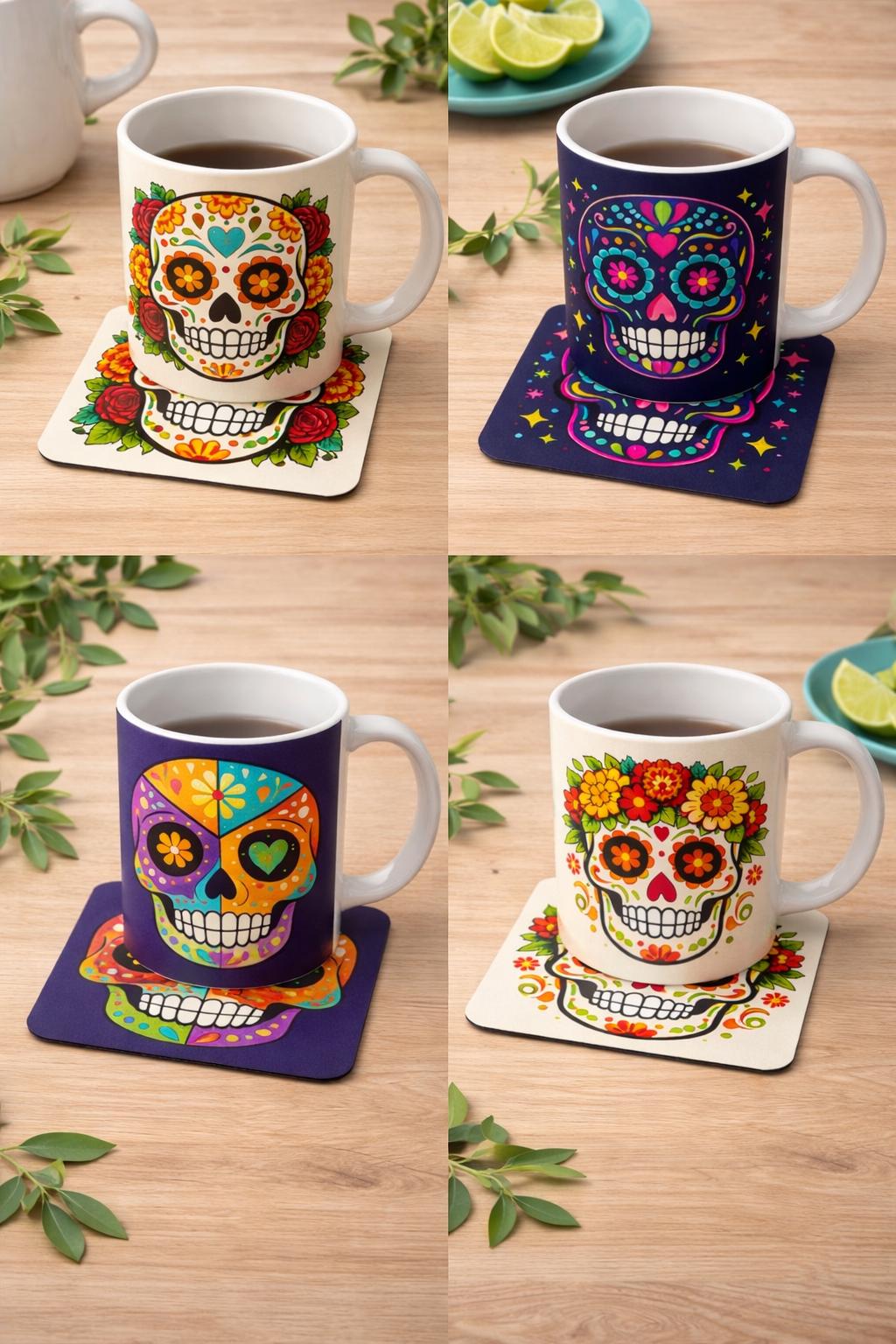 Add bold colour and personality to your daily coffee with this vibrant Sugar Skull Mug inspired by traditional Day of the Dead artwork. Each design features bright floral details, decorative patterns, and striking skull artwork that pairs perfectly with matching coasters for a coordinated look.
