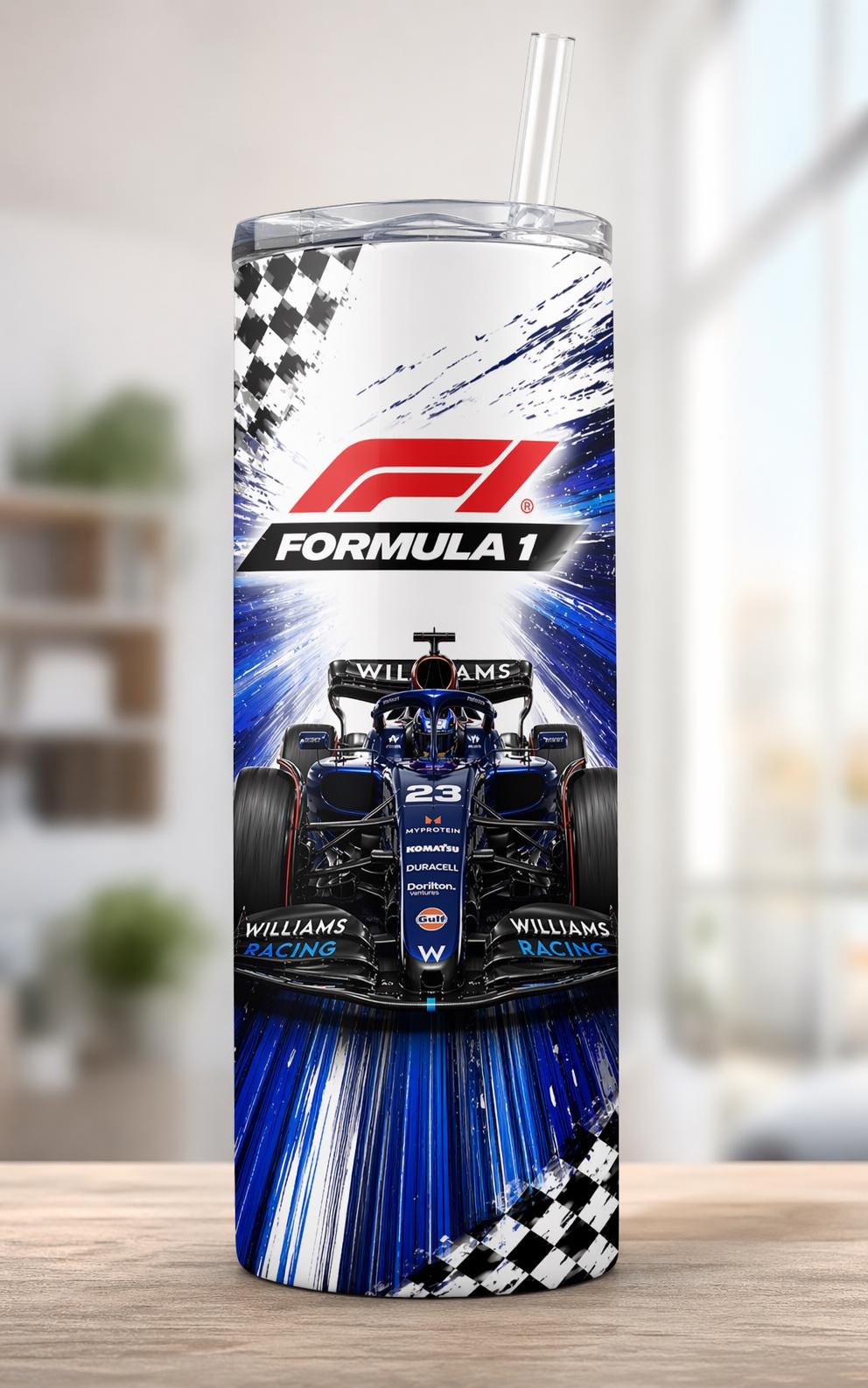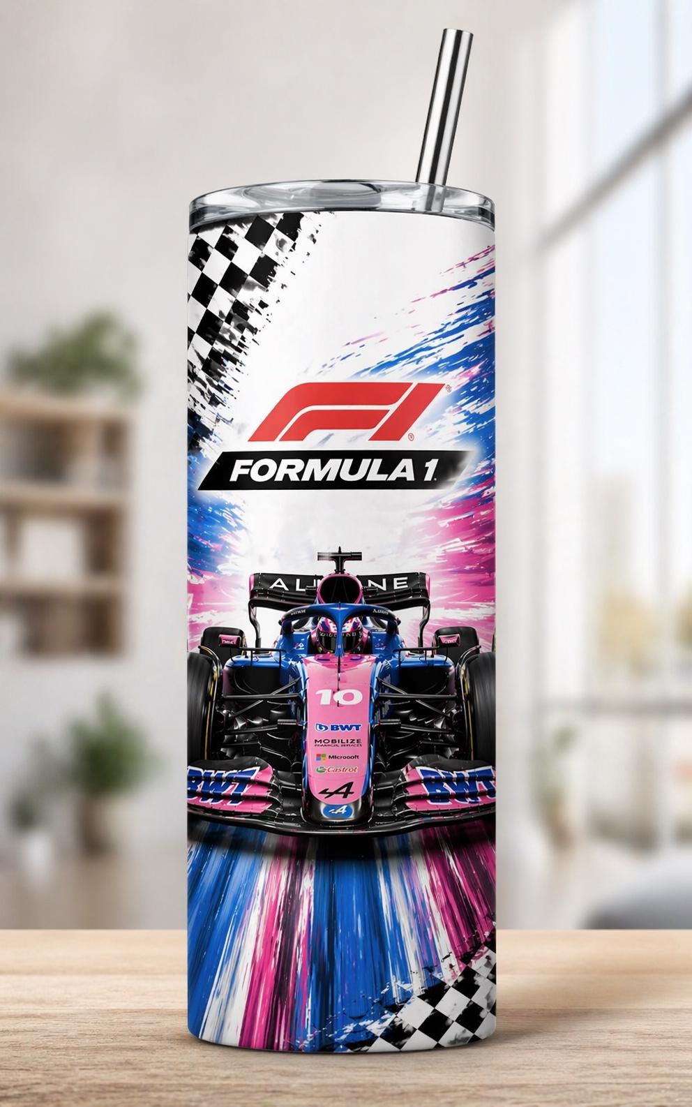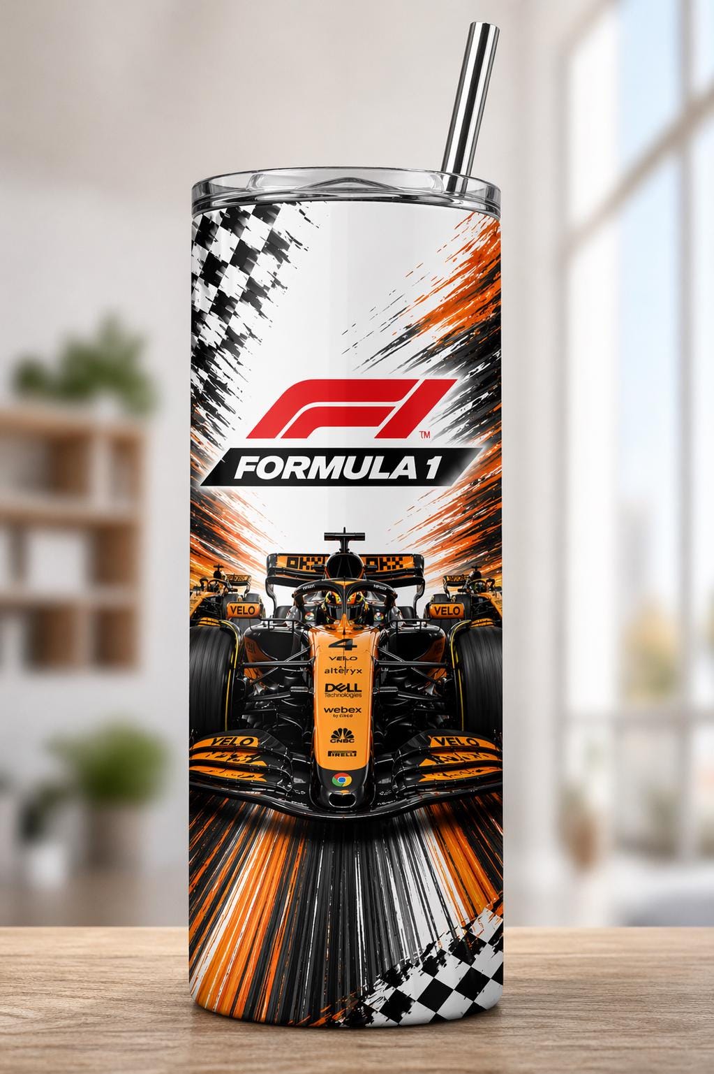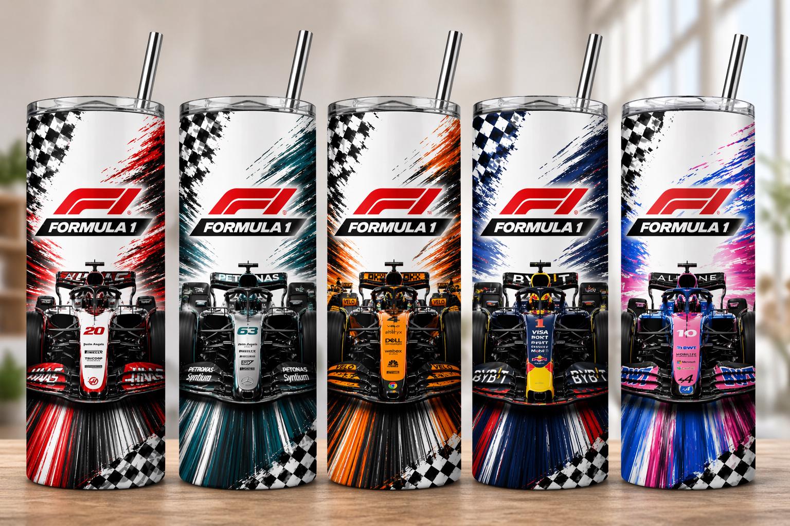 This high-impact 20oz skinny tumbler features a bold Formula-inspired racing design in striking red, black and white. Showcasing a dynamic single-seater race car, chequered flag detail, racing helmet and track elements, this wrap delivers serious motorsport energy. The sharp lines, glowing red accents and dramatic track scene make it a must-have for any racing enthusiast.