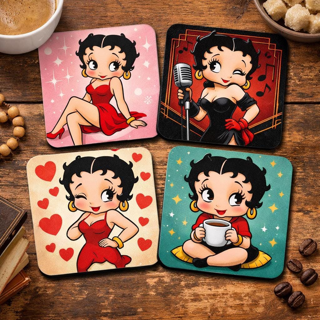 These coasters make a great gift for Betty Boop fans, retro collectors, cartoon lovers or anyone who enjoys unique home décor.