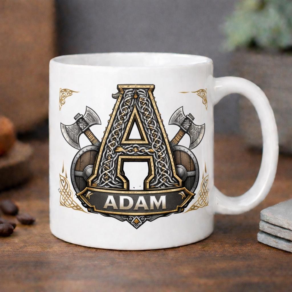 Each piece is personalised with a custom name banner beneath the Viking letter, making it a truly unique gift.