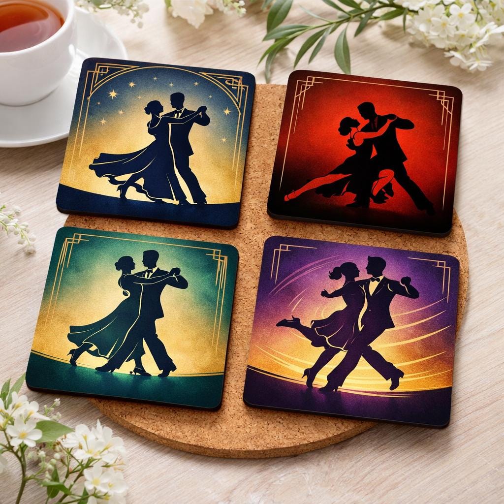 Add movement, elegance, and a touch of vintage glamour to your home with this stunning dance-inspired collection. Featuring beautifully stylised silhouettes of dancing couples, each design captures the rhythm and passion of classic ballroom and Latin dance.