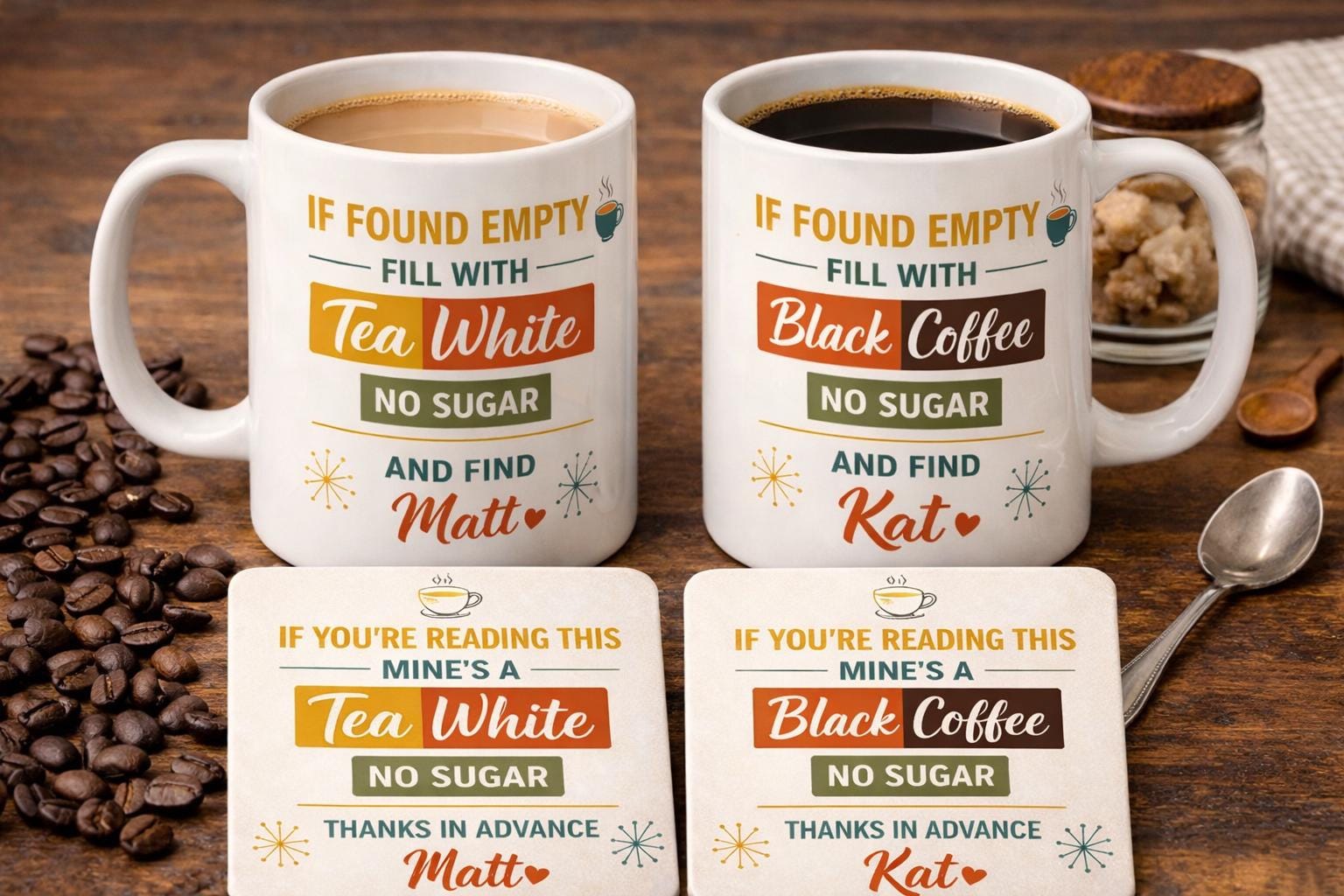 Add a touch of humour and personality to your daily brew with this personalised tea and coffee mug and coaster set. Designed for couples, households, or anyone who takes their drink very seriously, this set makes it clear exactly how your tea or coffee should be made.